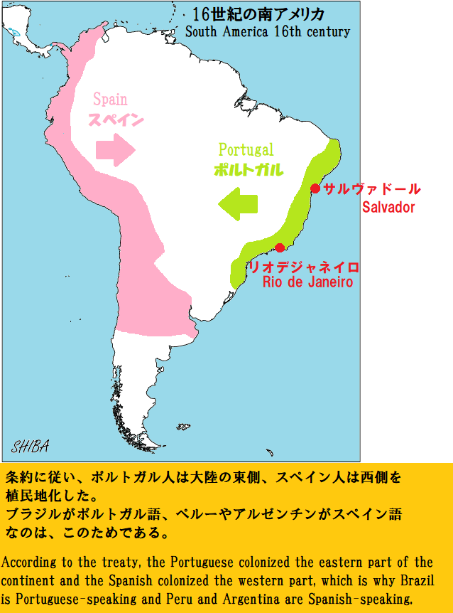 コロンブスがアメリカ大陸に到達してから8年後の1500年。ポルトガルの航海士カブラルが南米大陸東岸に上陸し、ここをポルトガル領としました。これがブラジルの始まりで、最初の首都(植民地の拠点)はサルヴァドールという街でした。