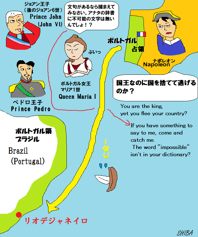 18世紀末、ヨーロッパではフランス革命が起き、その混乱の後、ナポレオンが各地を攻撃します。それはポルトガルも例外ではありませんでした。1807年ポルトガル王家はナポレオン軍の侵攻を察知し、国を脱出。大西洋を越えて植民地ブラジルに亡命しました。この結果、リオデジャネイロは、リスボンに代わる「ポルトガルの首都」にとなります。