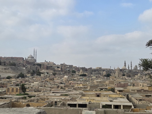 ハッサンというタクシー運転席は、英語が堪能で、マシンガントークで沿線の建物を教えてくれる。カイロの街は全体的見ると茶色の印象。丘陵地の山肌や古い建物などがどれも茶色で、派手な色の建物は少ない。道路は複雑怪奇。幅は広いものの、事前情報のとおり、本当に信号機も横断歩道も無いため、陸橋や立体交差が連続。ハッサン曰く20㎞もあるエジプト一長い橋(道路橋)がカイロにある、とのことだ(帰りに通った)。ギザへ向かうために中心部を避けた東側の道を通る。見えてくるのはモスクのミナレット。遠くには城塞シタデルも見えた。この異国情緒すぎる雰囲気を感じるだけでも、テンションは上がる。そして意外にもキリスト教会も所々に見られた。エジプト人の1割はクリスチャンとの事だが、その事が街を見るだけでも良く分かった。