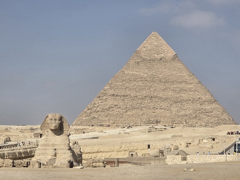 結局30分後に迎えに来てもらうよう頼み、タクシーを下車。チケットを購入(事前情報通りクレカのみ、しかも外国人は料金割増)し、保安検査(またX線!)を抜けてついにピラミッド・エリアの中に入る。そこには、今まで写真や動画でしか見たことのなかった光景が! ああピラミッド!ああスフィンクス!にわかには実感を得られぬ太古の建造物がそこにあった。本当はもっとそばに行って直接その石造りの巨大四角錐を見上げ、その手に4500年の歴史と神秘を感じたかった。しかし、状況はそれを許してはくれず、わずか10分でピラミッドエリアを出ることに。