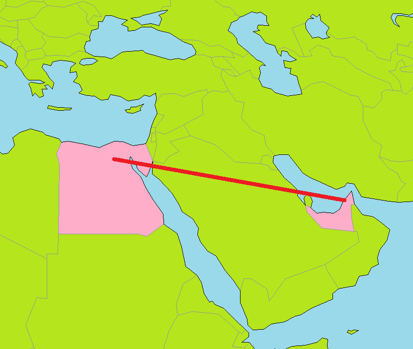 今回カイロ行きに利用したエジプト航空は、安全に関する案内もエジプト風。シートベルトや救命胴衣の形をしたヒエログリフ(エジプト象形文字)が出てきたのにはこだわりを感じた。座席はスリランカ航空より広く、しかも席が空いていたので、私たち2人の隣にいた男性が前の席に移ってくれた。これで大分ストレスも軽減。飛行機はドバイを出てペルシャ湾に出た後、カタール、バーレーンの東の沖を抜けて、サウジアラビア上空へ。そこからアラビア半島、シナイ半島を横断し、スエズ運河を右にのぞみながら、カイロへと降り立った。気温は意外にもドバイより幾分低い。