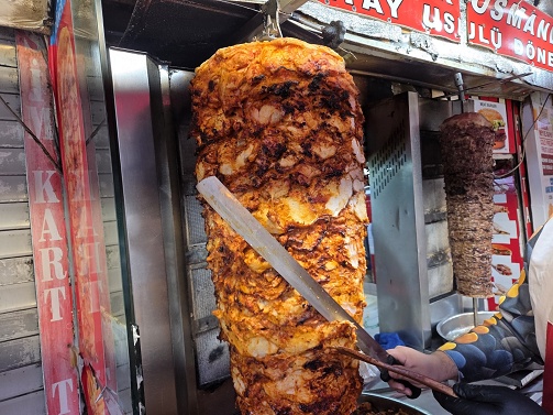 お昼になって小腹がすいたので、母を伴い、もう一度外に出てみる。事前に調べておいた方面へ足を運ぶが、方角を間違えたのか、お目当ての道ではなく、急な下り坂に出てしまった。しかし幸い、その道と交差していた脇道に、似たようなケバブのお店があったので、注文。お目当てのケバブサンドは売り切れだったので、ケバブ・ハンバーガーにする。ついでに串に刺した巨大な肉の塊をナイフで少しずつそぎ落とすシーンも撮らせてもらった。母はその場で生のフルーツを絞ってくれるフレッシュジュースを購入。ハンバーガーを食べた後、トルコアイスにも挑戦。なかなか受け取らせてもらえないパフォーマンスに二人で爆笑した。ようやく貰ったトルコアイスは、思いのほか粘り気が強く、不思議な食感だった。