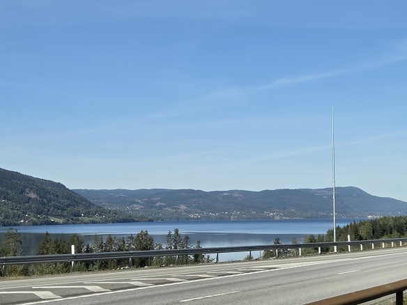 今日はオスロ空港近くのホテルで荷物を下ろした後、改めてオスロへ行く算段だった。当時リレハンメルからエイツヴォル(オスロとリレハンメルの間にある町)までの鉄道が運休中だったのだが、代わりにバスでエイツヴォルまで行き、そこから鉄道で1駅行くと空港駅だという。デンマークと同様ノルウェーでも公共交通はゾーン制を採っているらしく、チケットもアプリで購入できる。しかし、ここでトゥナの娘婿さん(音楽家)が時間を作れるというので、急遽予定を変更して、彼の家に向かう。夫妻が温かく迎えてくれたこの家も湖に面しており、ロケーションは抜群。部屋には世界地図が飾られており、今まで行った国や街にピンが刺してあった(日本は未訪問のようだ)。一方で2人は私達の旅のルートに驚き、私のリサーチ能力にも感心してくれた。母は彼の音楽スタジオに感銘を受けていたようだ。