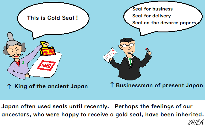 Japan was in the middle of the Yayoi(弥生) period, and the village in various places were gradually developing into kingdom. Among the rulers, there are those who borrow the power of Han. They sent messengers across the sea to the Eastern Han Dynasty, hoping to gain the emperor’s approval by becoming his vassals. It is said that in 57 A.D, the King of “Na”(奴) received a golden seal from the Emperor of Han.